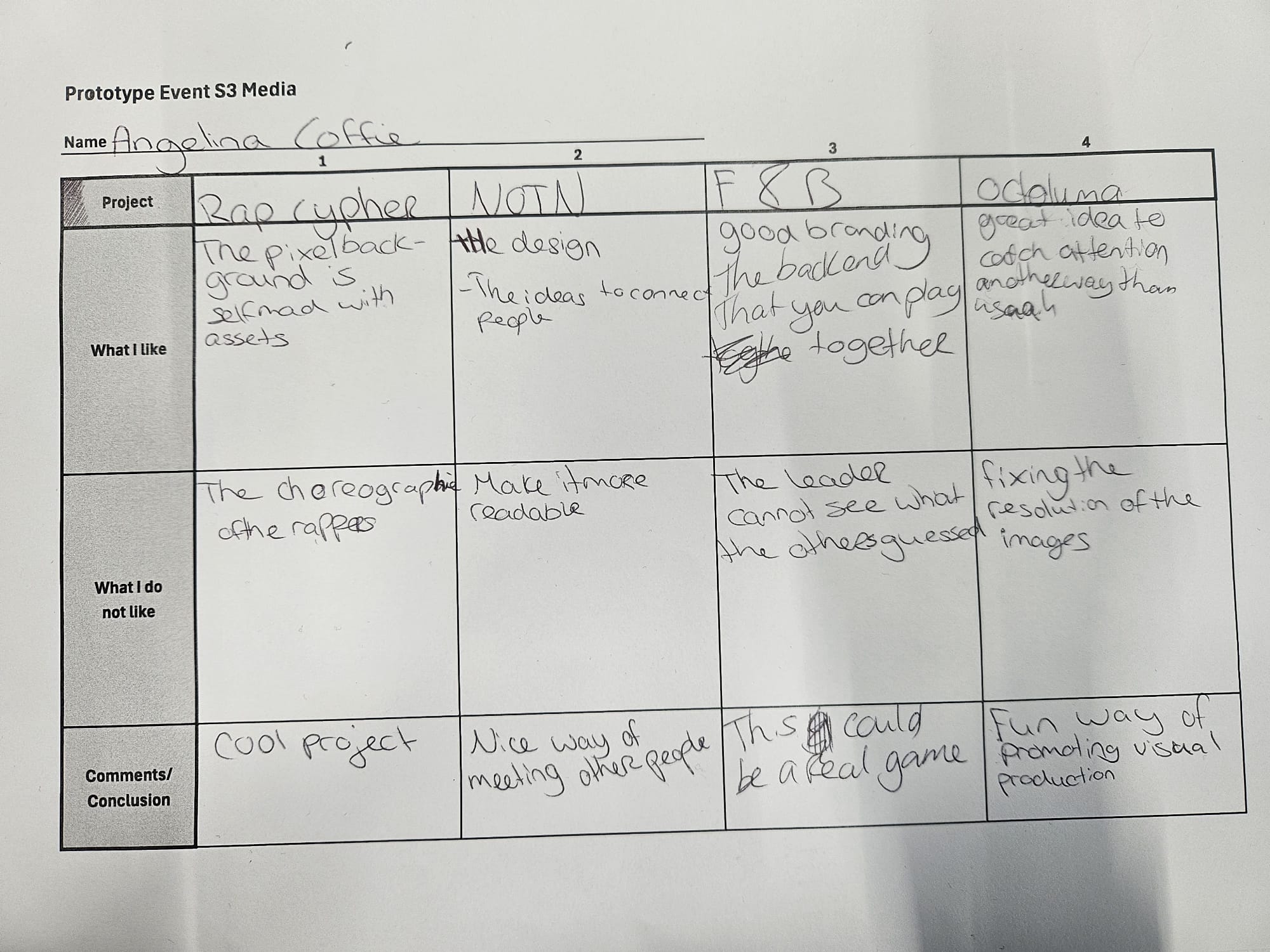 I got feedback from my classmates and the teachers: